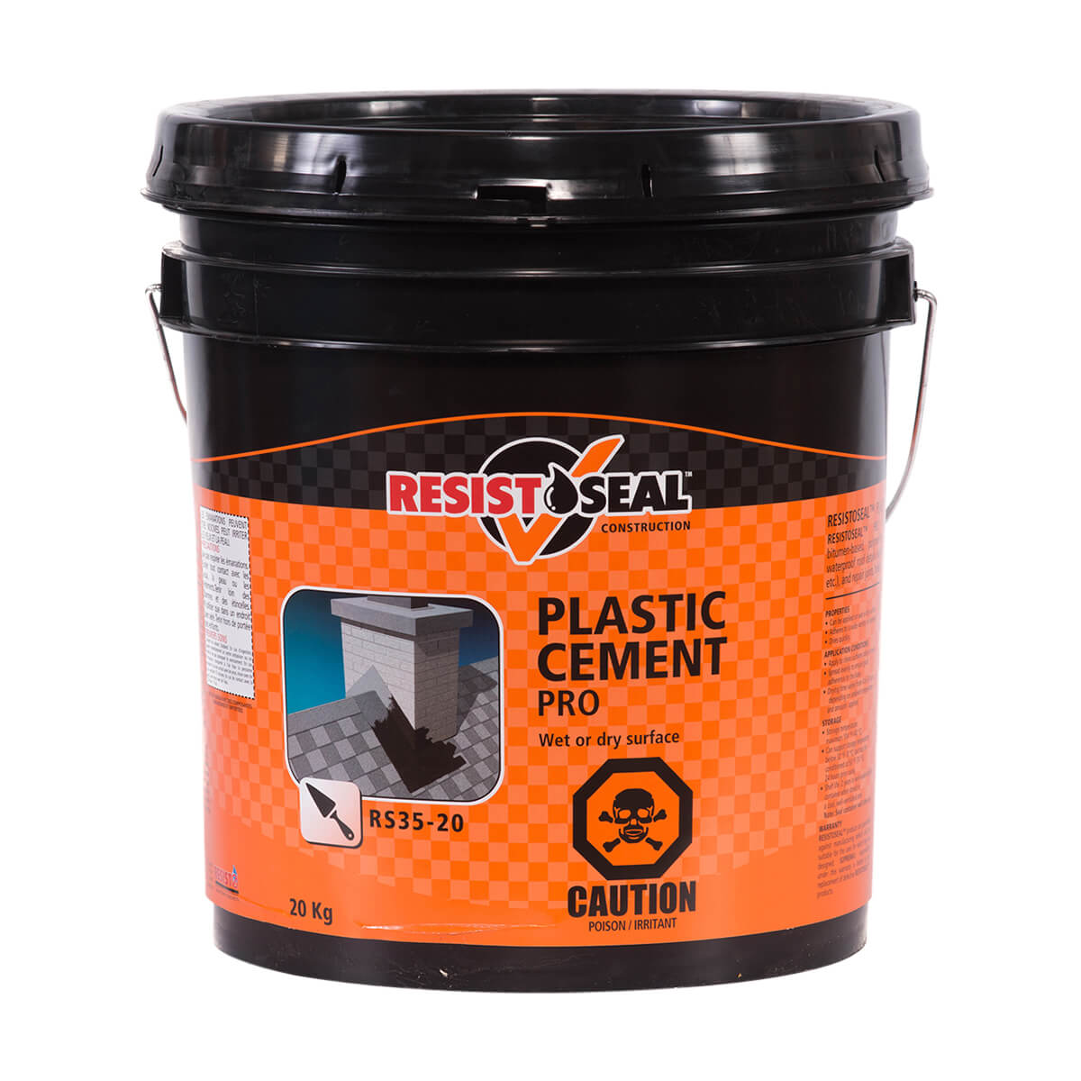 RESISTOSEAL PRO PLASTIC CEMENT is an all-purpose black mastic composed of bitumen, fibers, and mineral fillers, with a low level of solvent. It is used to fill and repair holes and cracks. It adheres to most materials without primer. Its formulation offers good resistance to tem/ature variations and is designed to be applied at low tem/atures.