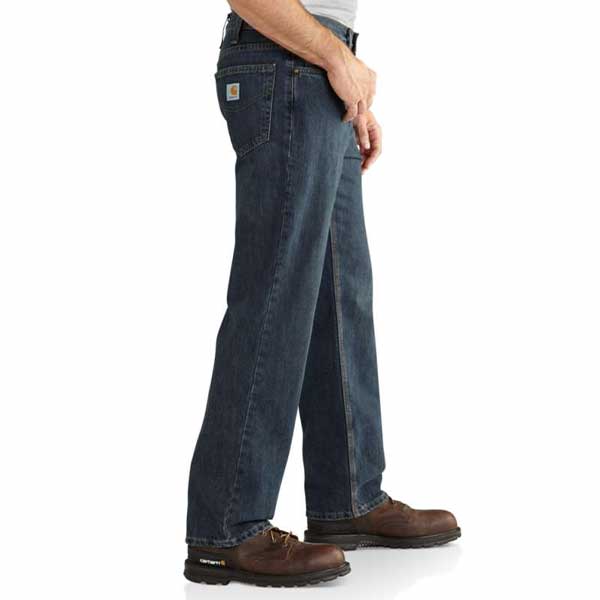 These men's jeans are made with midweight denim that's just as tough and durable as our heavyweight denim. The relaxed-fit jeans have a straight leg opening that fits over boots.