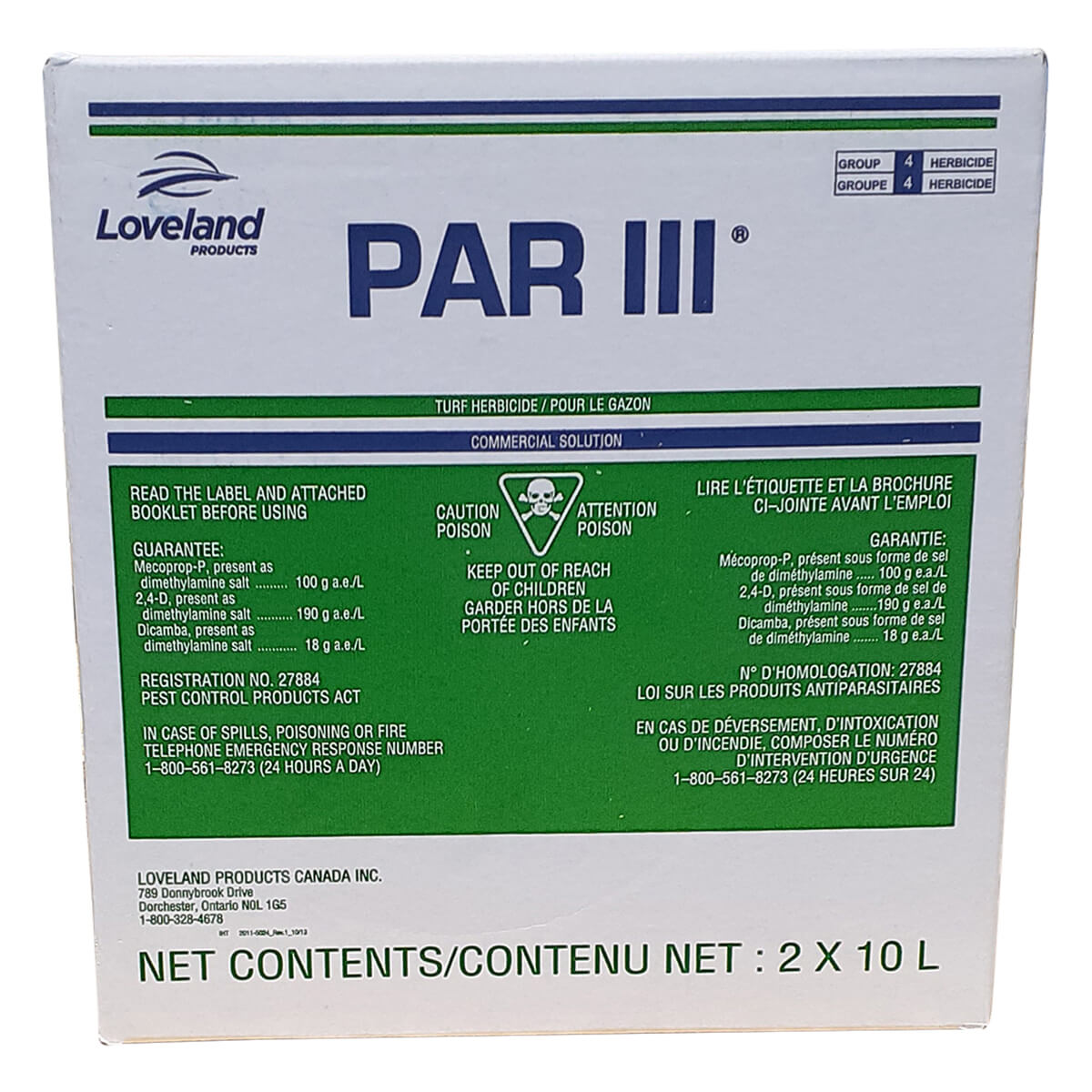 PAR III is formulated for the control of hard-to-kill broadleaf weeds in lawns, golf courses, parks, and other turf growing areas.