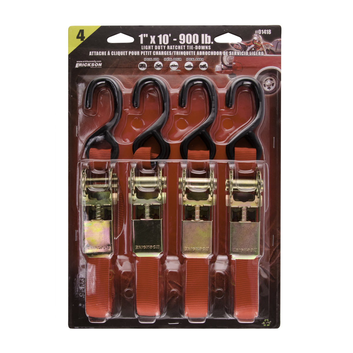 - Erickson Ratchet Straps - 900 lb - 1-in x 10-ft - 4 Pack